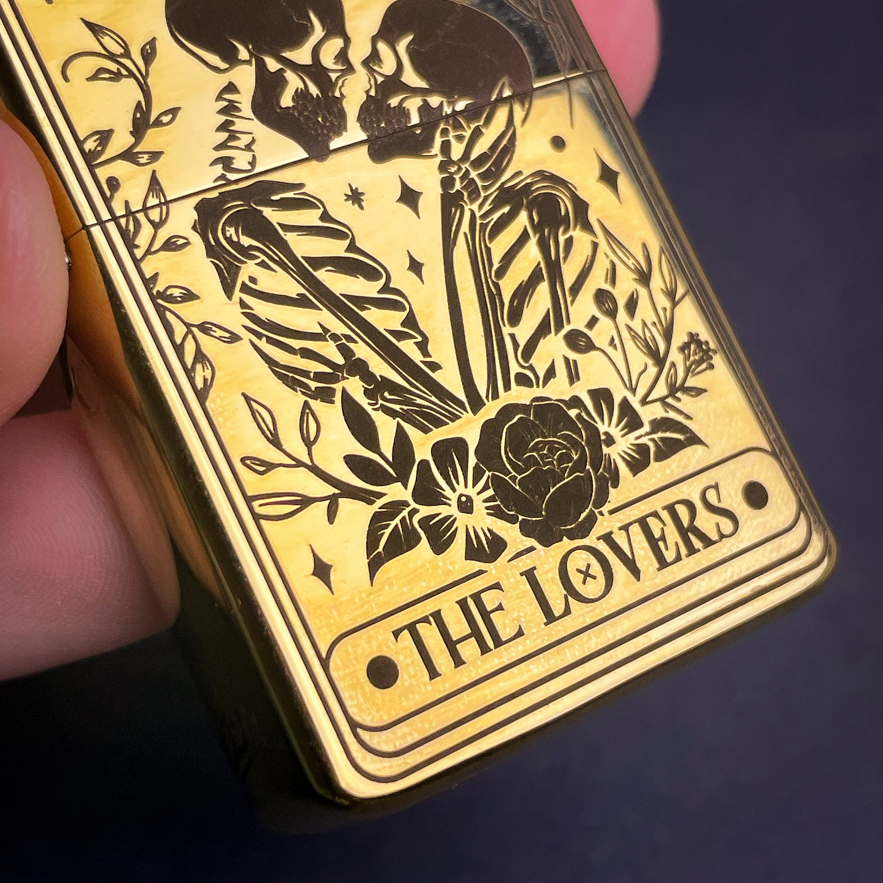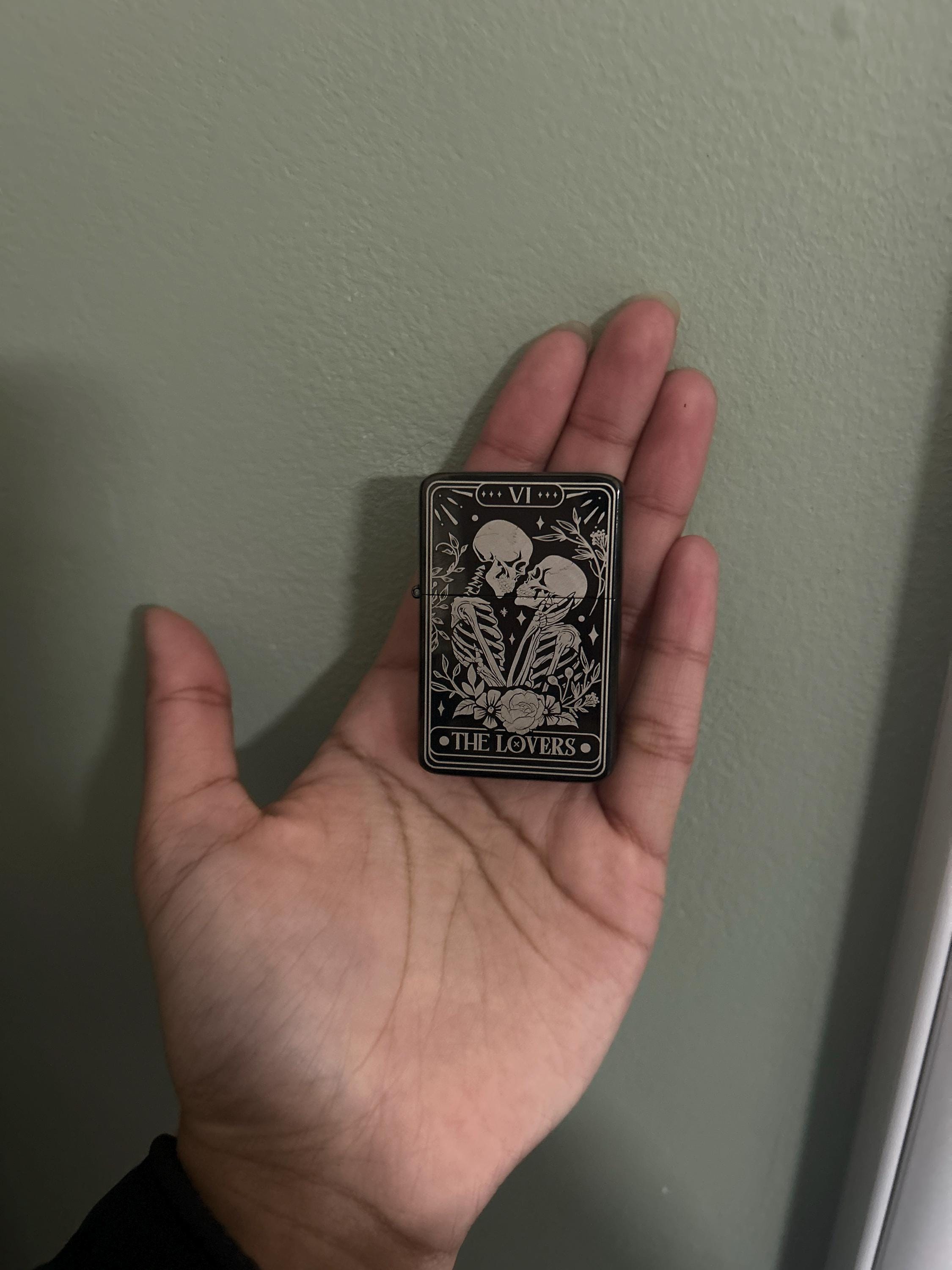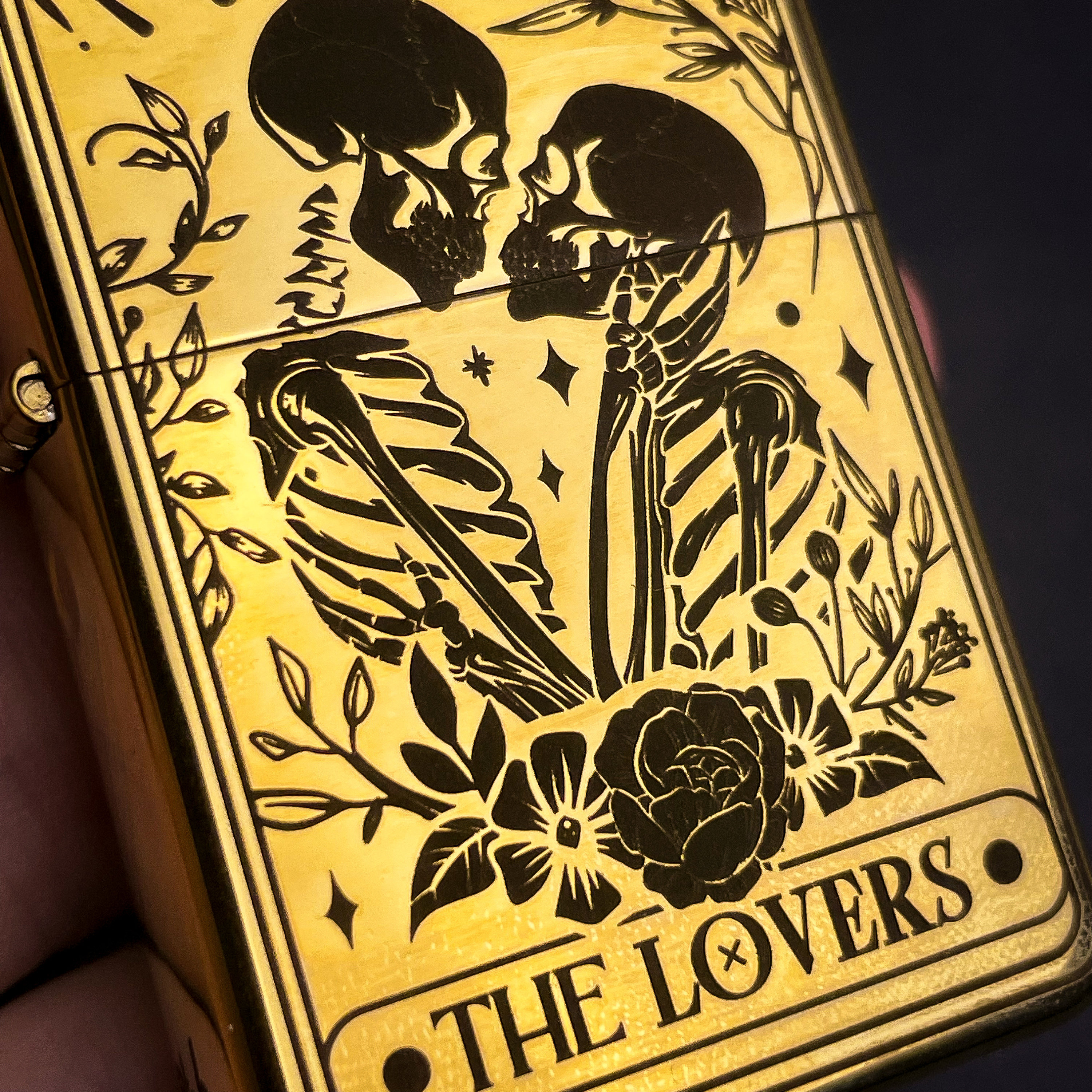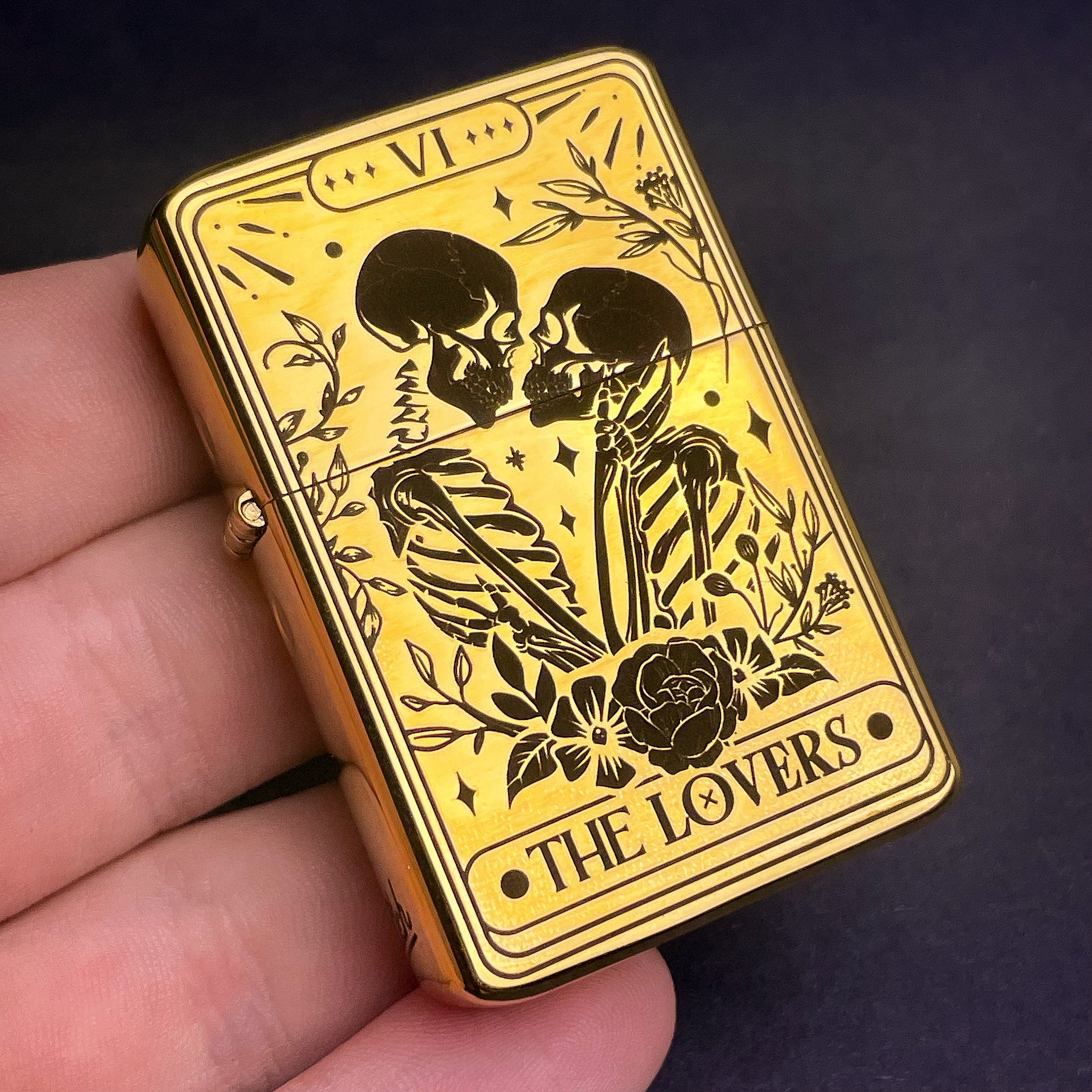 Skull Lovers Tarot Card Custom Engraved Lighter || Personalised Lighter Gift for Him And Her || Brass Flip Lighter Vintage Skeleton Lighter