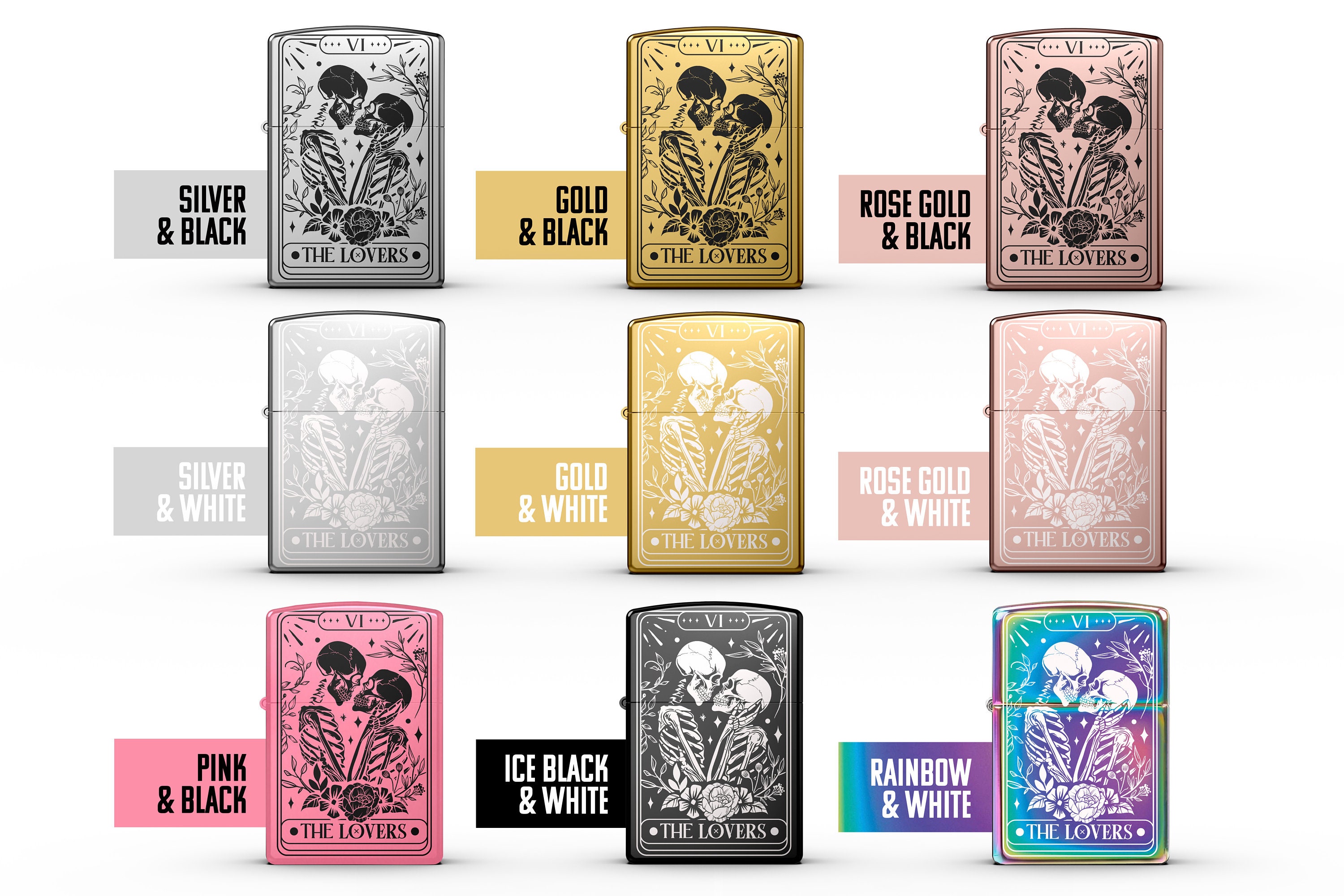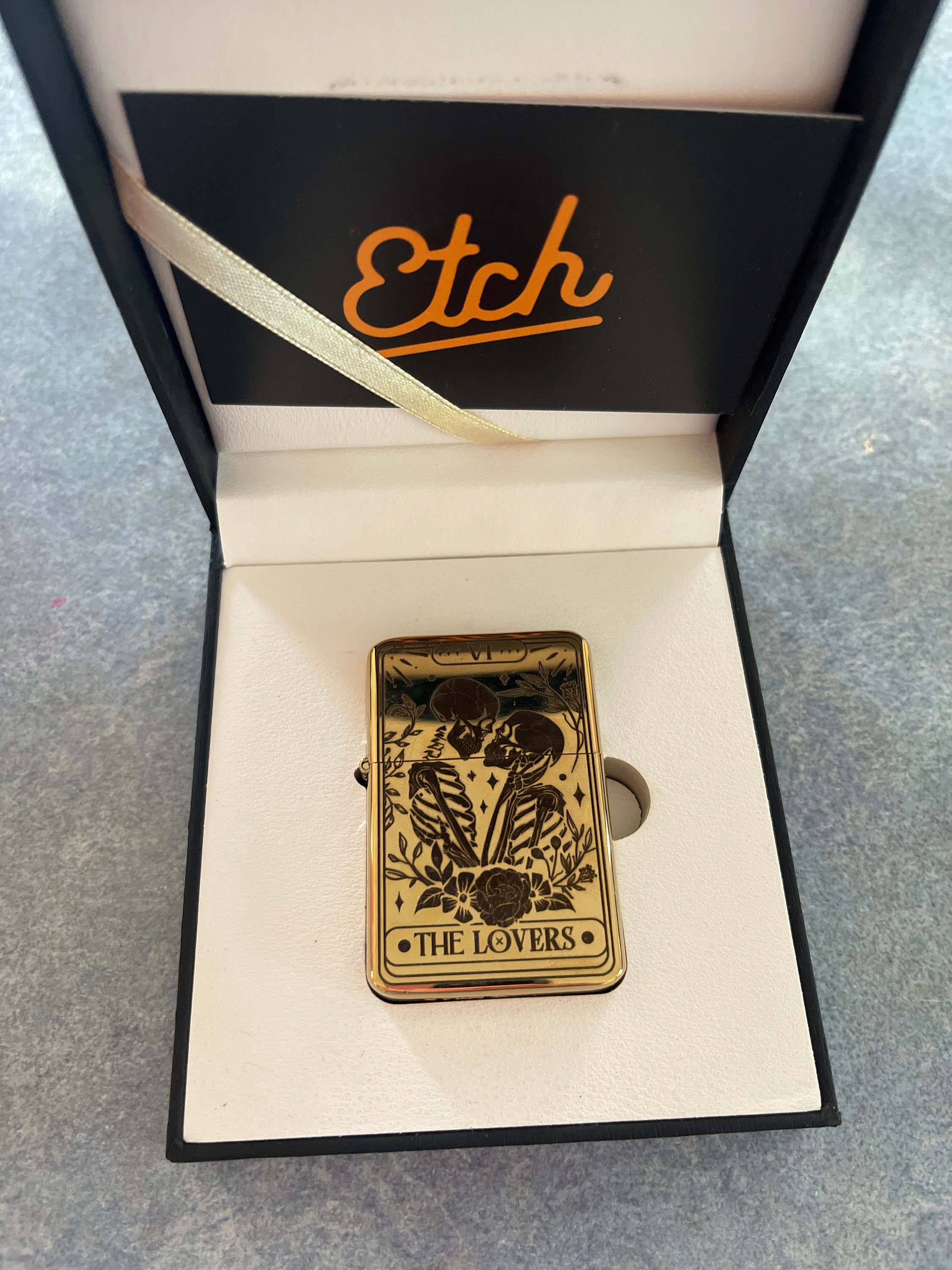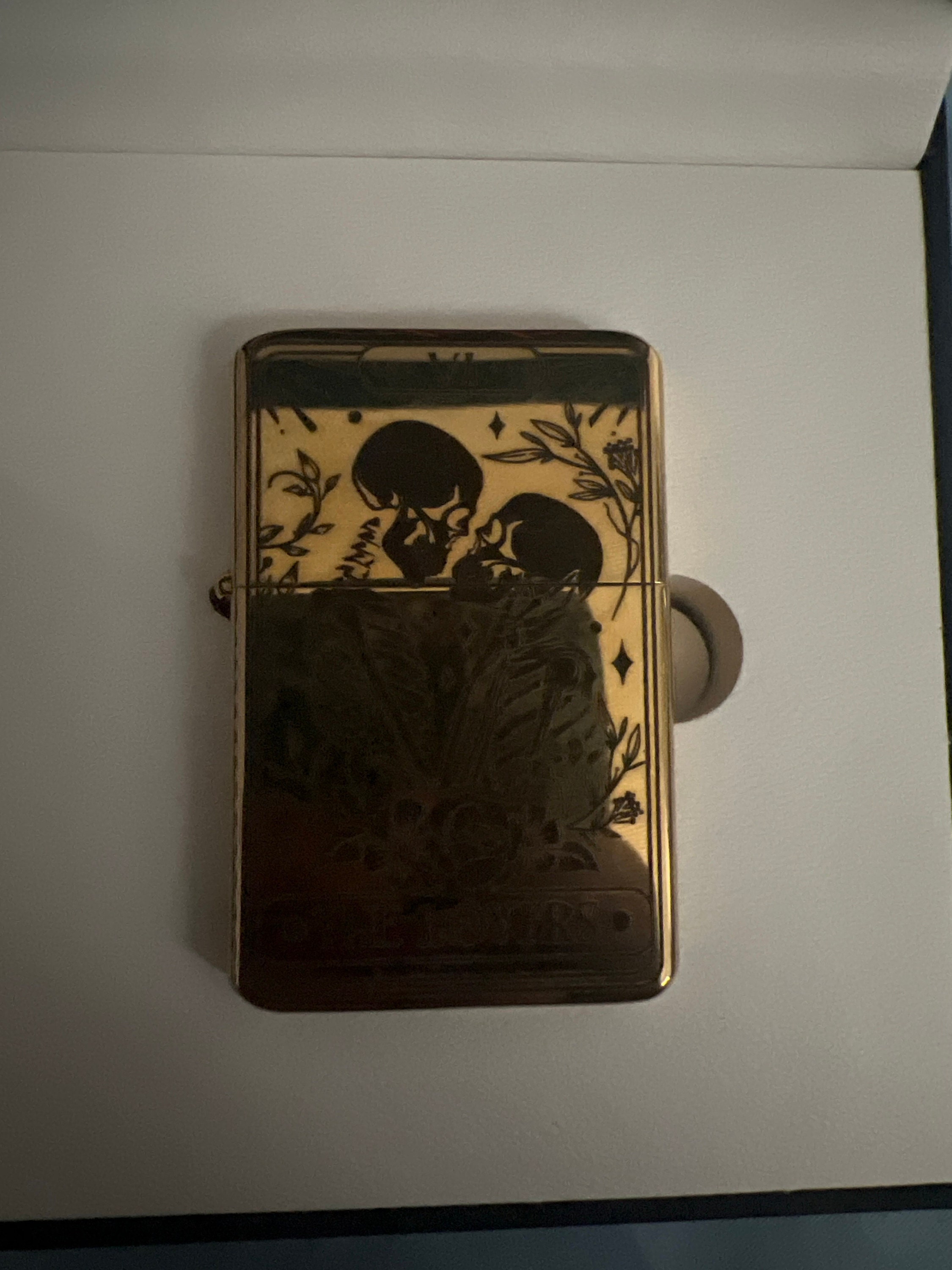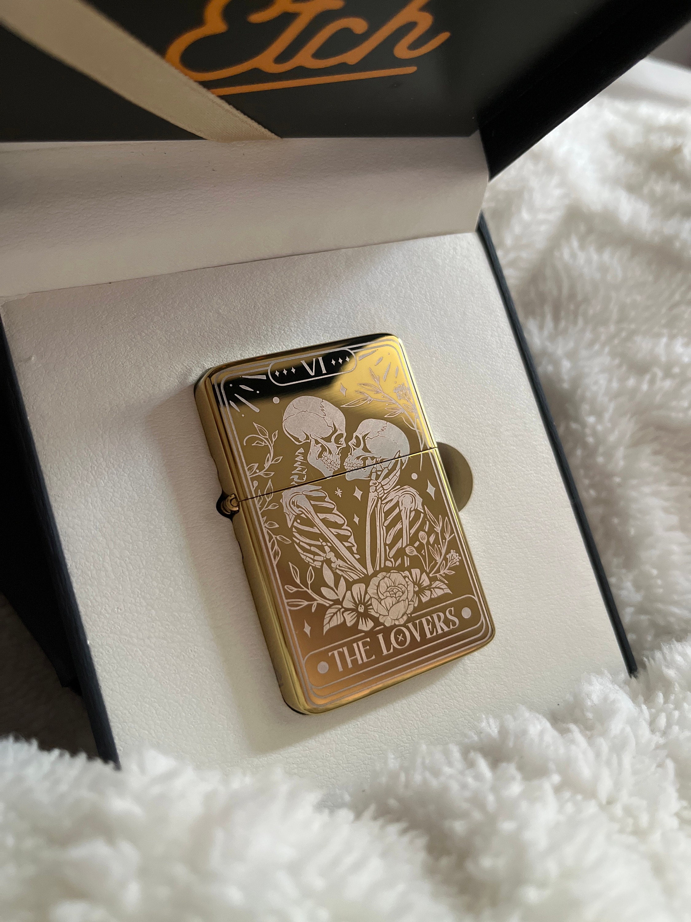 Skull Lovers Tarot Card Custom Engraved Lighter || Personalised Lighter Gift for Him And Her || Brass Flip Lighter Vintage Skeleton Lighter