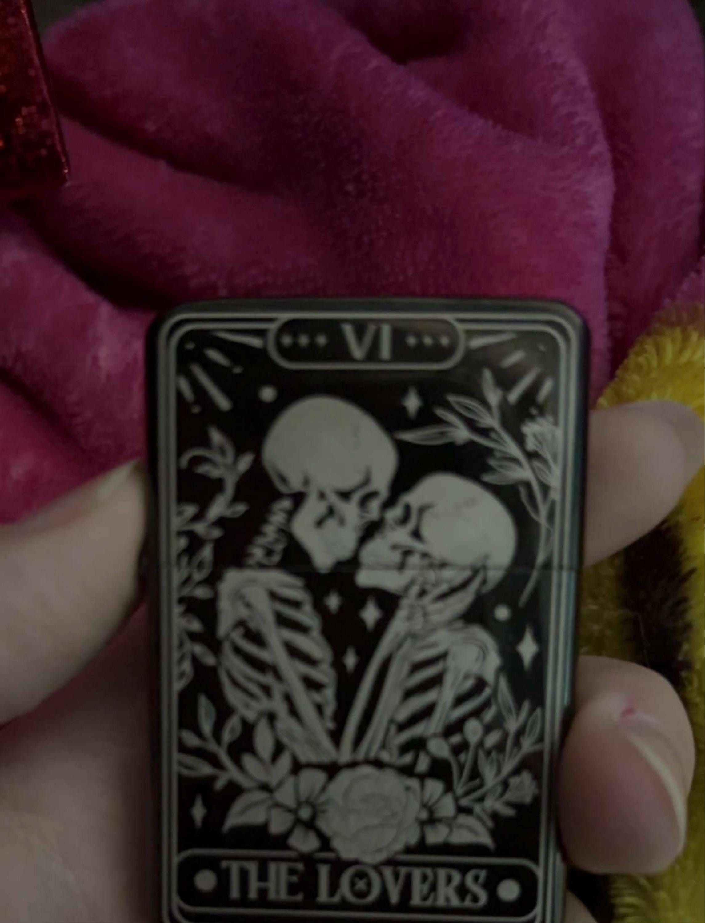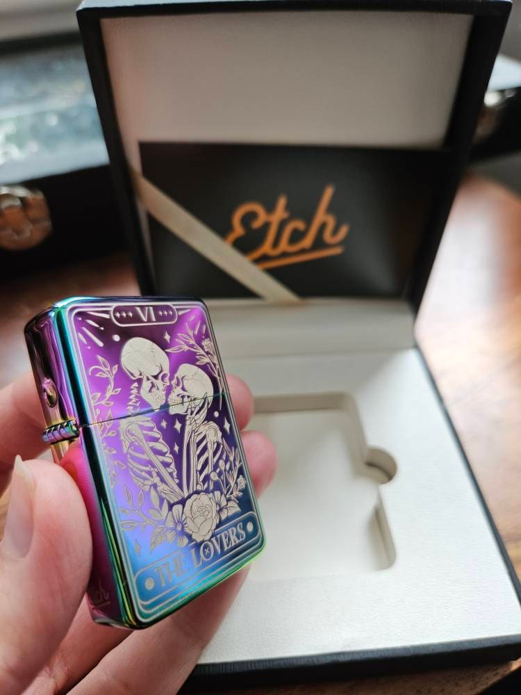 This windproof refillable lighter inspired by the Couples Tarot deck is the perfect lighter for any tarot lover.